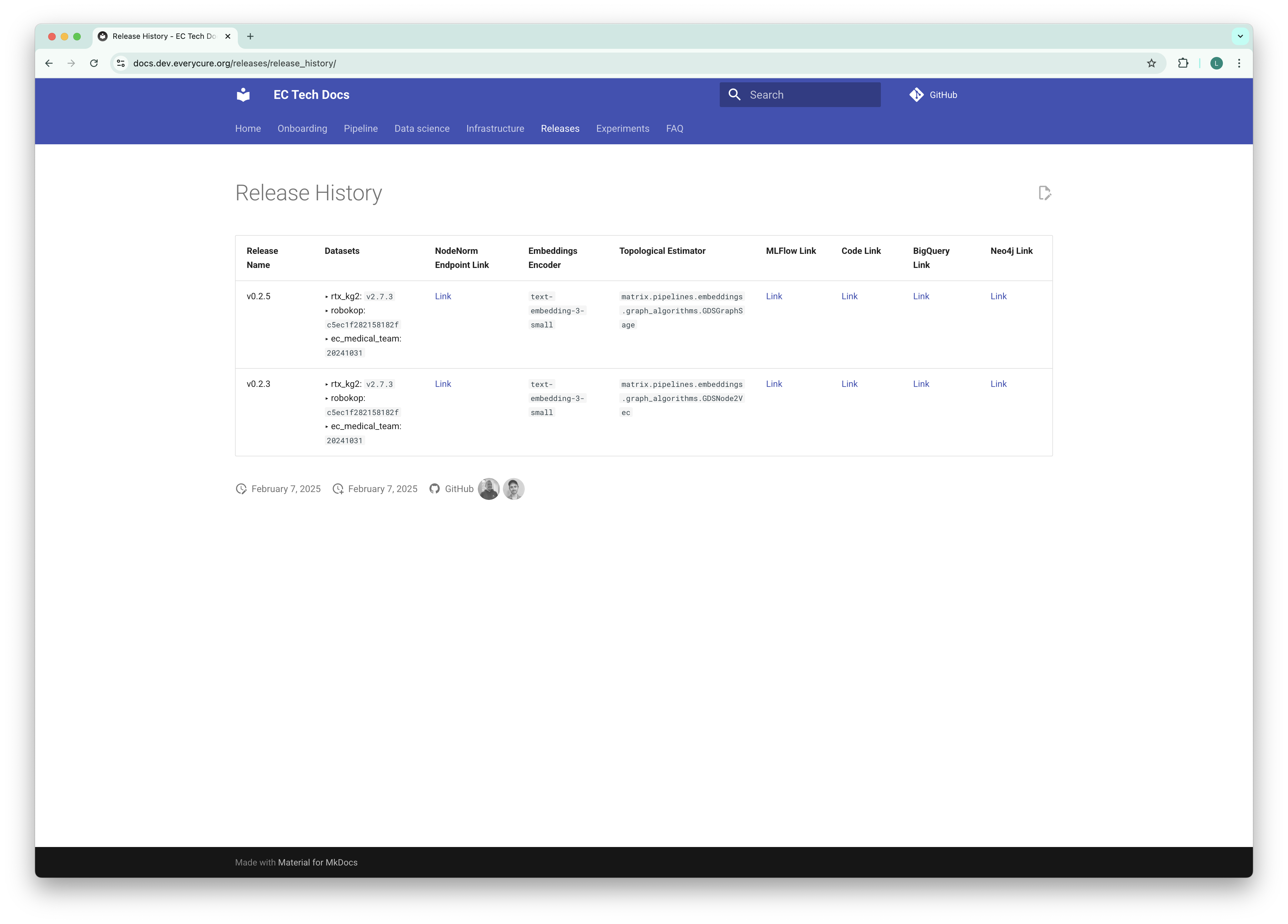 We will continue to expand this page to include more information about the data releases. We are also looking for a more standardized approach to publish (internal) datasets in the form of a dataset catalog, especially as we start building multiple features based on the KG which will become distinct datasets that can be consumed