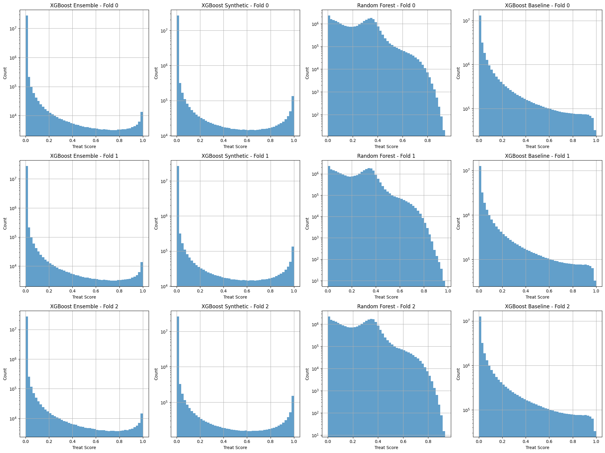 We've also extended our pipeline evaluation suite to produce model stability metrics. The screenshot below shows a distribution of treat scores for the matrix across the folds.